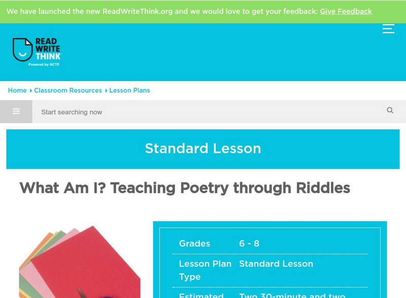 Excellent teaching resource that attempts to teach poetic concepts to middle schoolers by using riddles. Discusses riddles' use of metaphor, simile, and imagery, and relates these concepts to the students' understanding of poetry....