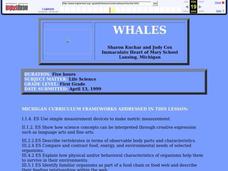 First graders investigate two different types of whales; toothed and baleen. They describe what the different types of whale eat. They listen to a cassette of Dyan Sheldon's, The Whale Song before making stick puppets to dramatize the...