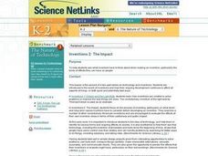 Learners discuss the impact of certain inventions. For this technology lesson, students research Thomas Edison and the light bulb on the Internet and discuss how the invention impacted society. Learners create their own simple inventions.