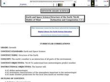 Seventh graders examine the job of meteorologists. They decide which characteristics of the atmosphere that meteorologists focus on. They use local weather maps from newspapers to predict weather in their area.