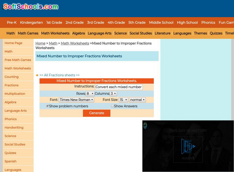 Soft Schools: Mixed Number to Improper Fractions Worksheet