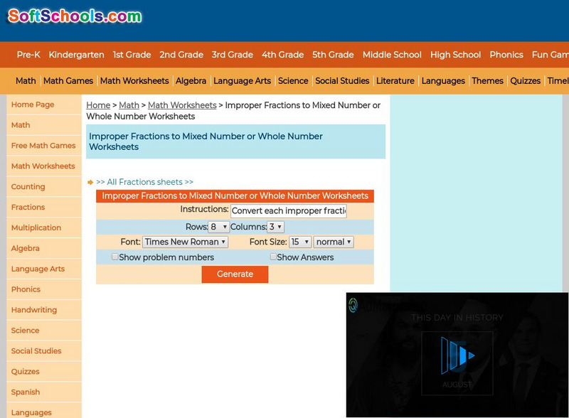Soft Schools: Improper Fractions to Mixed Number Worksheet
