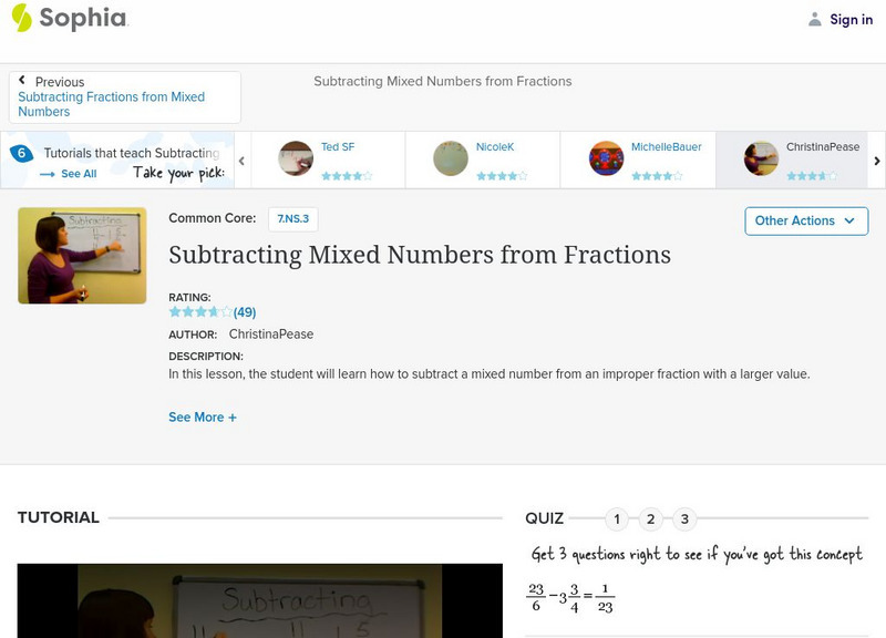 The lesson investigates how to subtract mixed numbers from fractions. A detailed example is included in the video lesson.