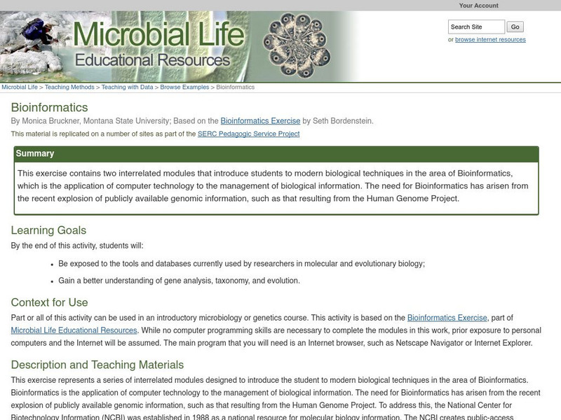 This exercise contains two interrelated modules that introduce students to modern biological techniques in the area of Bioinformatics, which is the application of computer technology to the management of biological information. The need...