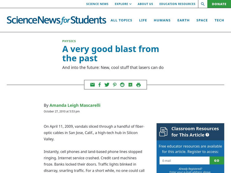 Describes the importance of laser technology to modern life, how the laser was invented, how lasers work, and what we can expect in the future from laser technology. [Date of Article: October 27, 2010]