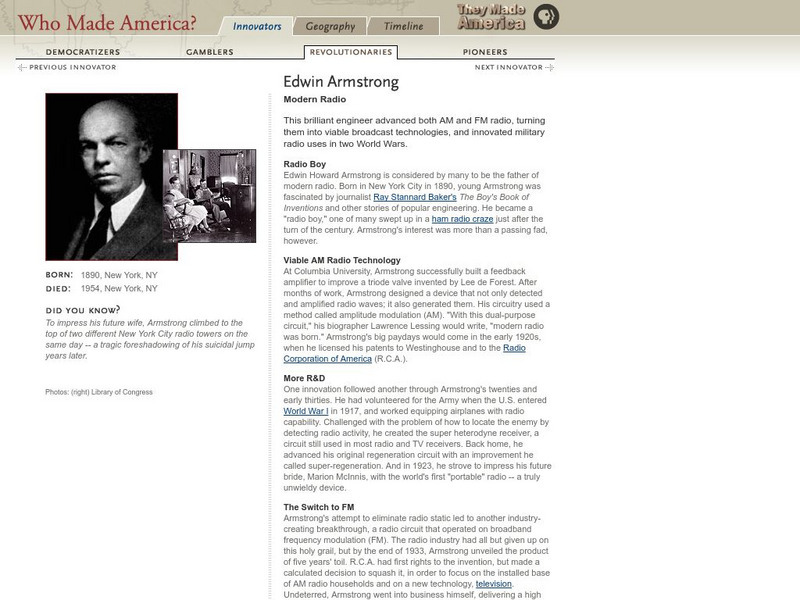 Pbs: Who Made America?: Innovators: Edwin Armstrong