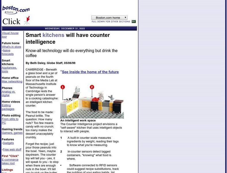 Look at a futuristic kitchen that has an intelligent workspace with built in counter scales, detection sensors for kinds of food, and software connected to RFID sensors to suggest ingredients for recipes and order groceries. Learn more...