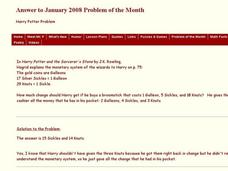 In this middle/secondary mathematics worksheet, students solve a unit conversion riddle that is based on the monetary system of the wizards in Harry Potter. The one page worksheet contains one problem. Solution is...