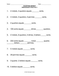 For this counting money worksheet, students count money that include $1 bills and coins. Students complete 10 problems total on this worksheet.