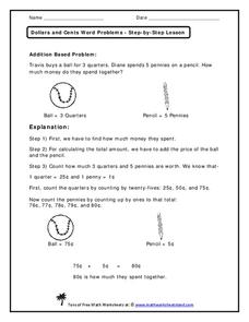 These are some cheap items! Learners explore cost with this addition word problem which has them examine the price of a baseball and a pencil. They add them together to find the total spent. Because there is an explanation below,...