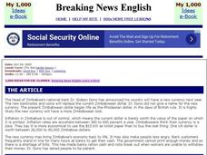 In this Zimbabwe's new currency instructional activity, learners read the article, answer true and false questions, complete synonym matching, complete phrase matching, complete a gap fill, answer short answer questions, answer...