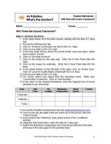 This air pollution worksheet provides a step-by-step process for gathering data about the ozone and weather. Amateur meteorologists enter data for 3 days including the air quality, the temperature, the wind speed, any particular events...