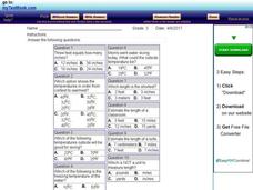 In this measuring length and temperature for Grade 3 worksheet, 3rd graders answer ten multiple choice questions on paper. The answers are available on the screen.