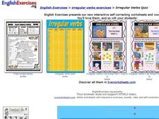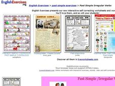 In this online interactive English activity, students respond to 19 fill in the blank questions that require them to use verbs appropriately. Students may submit their answers to be scored