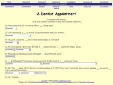 In this speaking and listening skills worksheet, 6th graders role play that they are making a dental appointment. They read a script as practice their speaking and listening skills. There are no questions associated with this worksheet.
