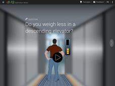Do you weigh slightly less when an elevator first starts its descent? The simulation teaches the change in the force based on the acceleration, constant speed, or deceleration of an elevator. Scholars control the mass and acceleration...