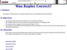 Students investigate the elliptical orbit around the Sun. They use the information gathered to measure the distance to the Sun from the closest orbital point and the farthest orbital point.