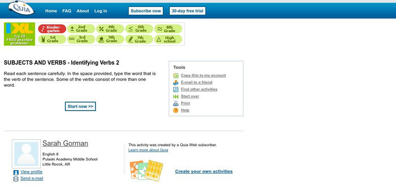 Complete twelve sentences by choosing the verb that agrees with the indefinite pronoun subject of each sentence. Once answers are submitted incorrect answers are shown and a percentage score is given.