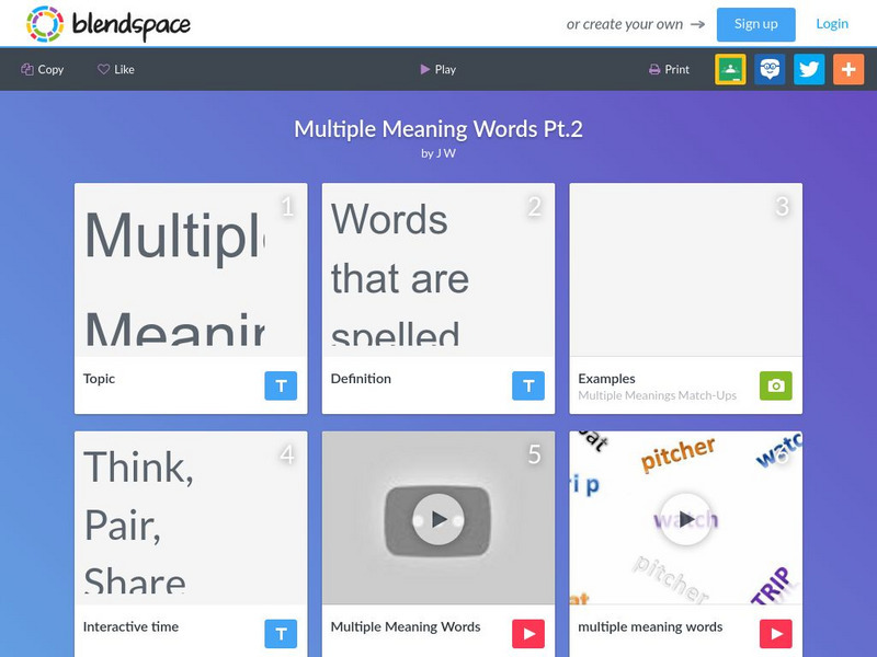 A six-part learning module with links to texts, and image, and videos about multiple meaning words.