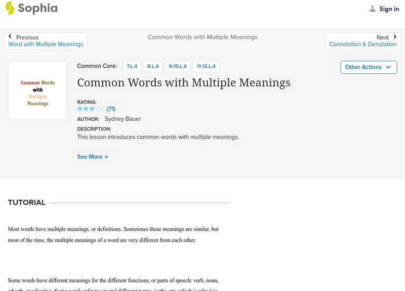 This lesson explains common words with multiple meanings: some similar and some very different meanings and the impact of parts of speech on meaning. It discusses six common words with their multiple meanings and different parts of...