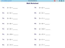 There are 30 chances for your scholars to practice their multiplication skills with these straightforward problems. Each has one double-digit factor and one single-digit factor, and they are vertically aligned. Learners regroup where...