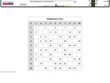 In this multiplication facts review instructional activity, students fill in the 50 blanks in a multiplication chart. Completion of the chart requires students to multiply using the numbers 1-10.