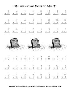 In this multiplication facts worksheet, students complete four 10 by 10 grid charts with multiplication facts to 144. Students try to complete each chart in less than five minutes and score 98% or better.