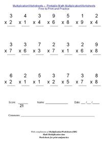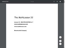In this multiplication learning exercise, students complete a set of 21 problems, multiplying a one-digit number by another. A reference web site is given for additional activities.