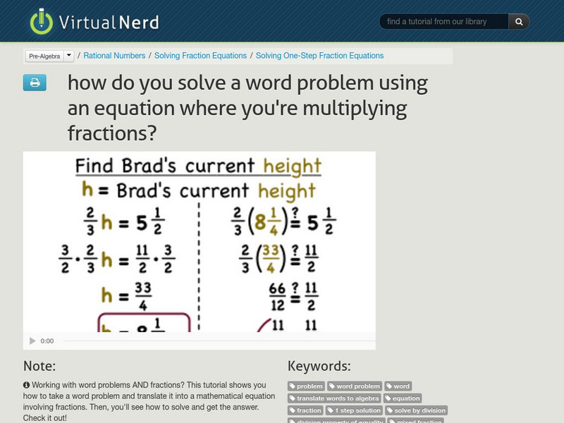 Virtual Nerd: Solve Problem Using an Equation Where You're Multiplying Fractions
