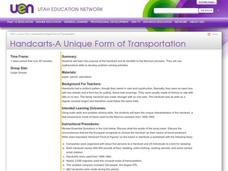An interesting historical fact about how handcarts benefitted to the Mormon pioneers is the context behind this math lesson. Using given facts and figures regarding the handcart, pupil pairs create math word problems, share them with the...