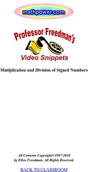 Professor Freedman's Video Snippets Multiply/divide Integers