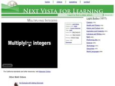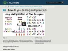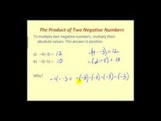 Learning to multiply is the product of hard work. Viewers of a short instructional video review how to multiply negative numbers. They first use patterns to justify the rules for multiplication, then watch the narrator work through some...