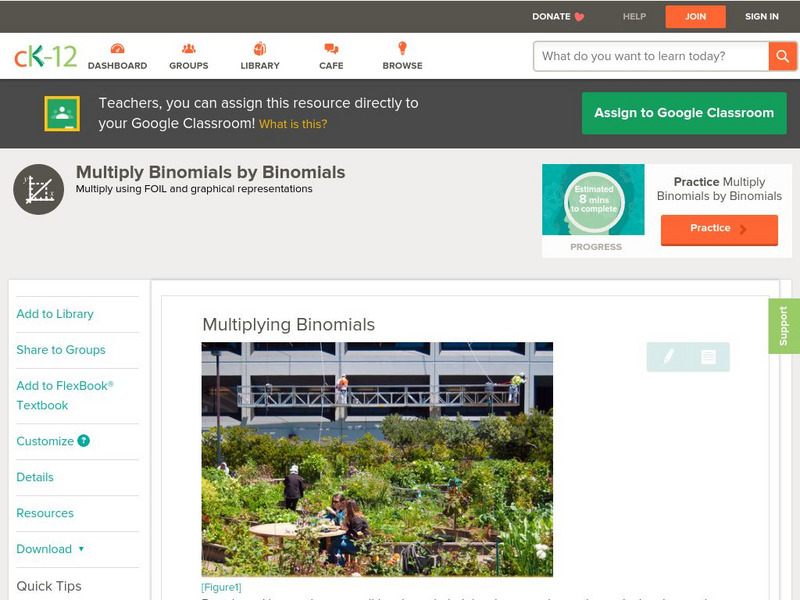 Ck 12: Algebra: Multiplying Binomials Mentally