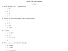 In this prime numbers worksheet, students answer multiple choice questions about prime numbers and how they are read. Students answer 10 questions total.