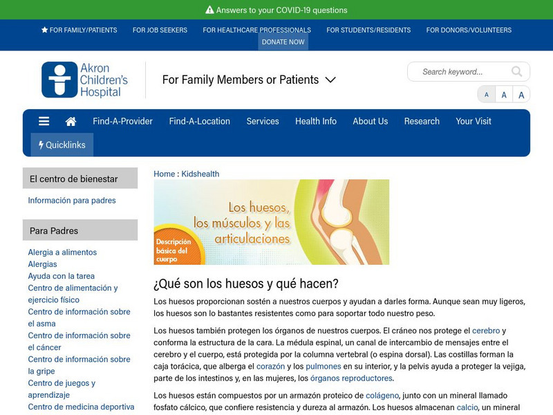 Akron Children's Hospital: Kids Health: Musculos Y Articulaciones