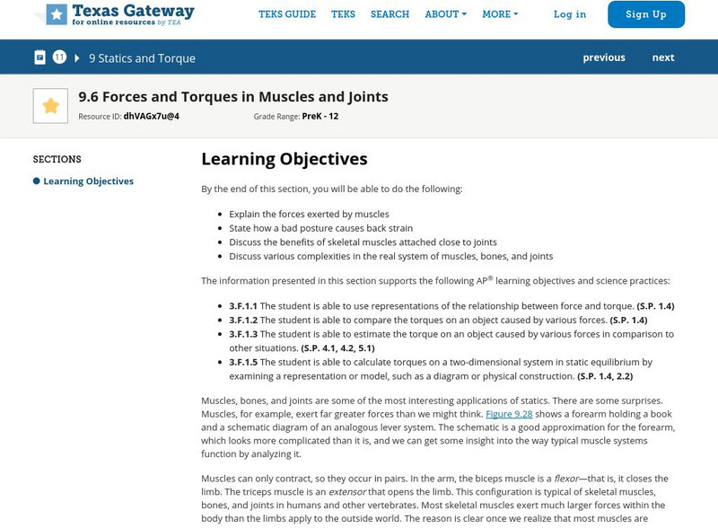 Texas Gateway: Forces and Torques in Muscles and Joints