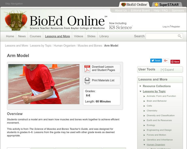 In the following lesson learners are required to construct a model arm and learn how muscles and bones work together to achieve efficient movement.