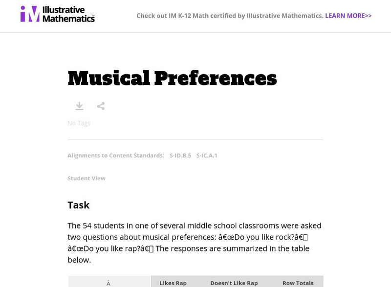 Illustrative Mathematics: S Ic, S Id Musical Preferences