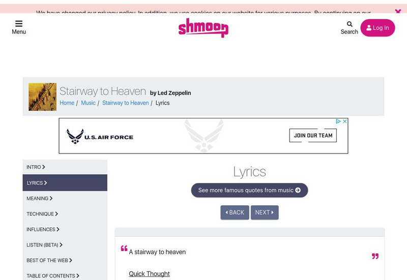 Read Write Think: Stairway to Heaven Examining Metaphor in Popular Music