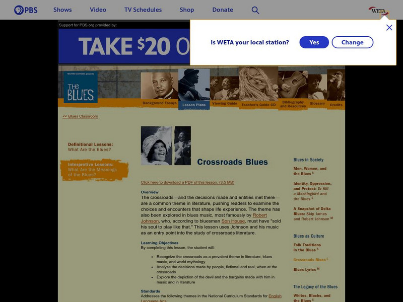 Your student will discover more about the life and work of Robert Johnson with this informative lesson plan. This resource features lesson plans, web resources, and more.