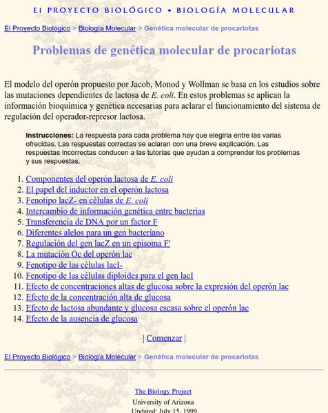 University of Arizona: Problemas De Genetic Molecular De Procariotas