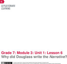 Douglass to determine the purpose of the text. They use Frederick Douglass’s Purpose: Text and Questions handout and a close reading guide to direct their thinking. To...