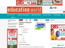 Combining descriptive and expository writing skills, middle schoolers create a character sketch about someone they know well. They use a graphic organizer to help them discuss a model character sketch and organize/write one of their own....
