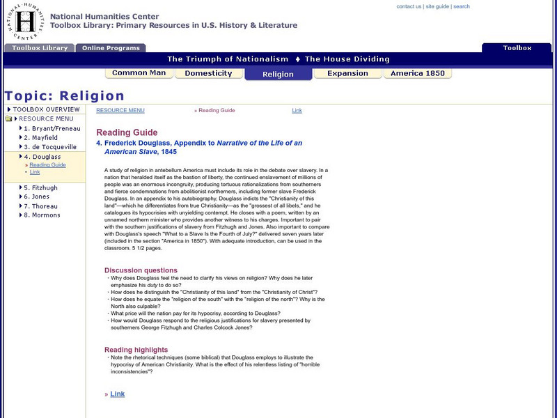 National Humanities Center: Toolbox Library: Religion: Frederick Douglass