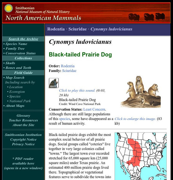 National Museum of Natural History: American Mammals: Black Tailed Prairie Dog