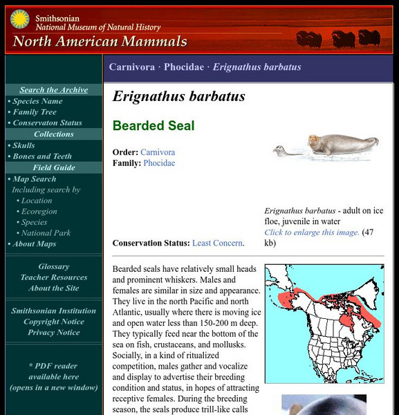 Bearded seals have relatively small heads and prominent whiskers. Males and females are similar in size and appearance. Learn more about the Erignathus barbatus, more commonly known as a Bearded Seal, in this easy-to-read species...