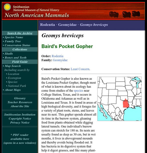 National Museum of Natural History: American Mammals: Baird's Pocket Gopher
