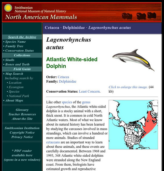 National Museum of Natural History: American Mammals: Atlantic White Sided Dolphin