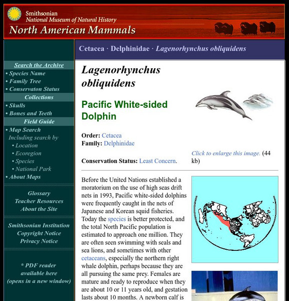 National Museum of Natural History: American Mammals: Pacific White Sided Dolphin