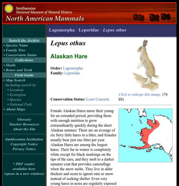 National Museum of Natural History: American Mammals: Alaskan Hare